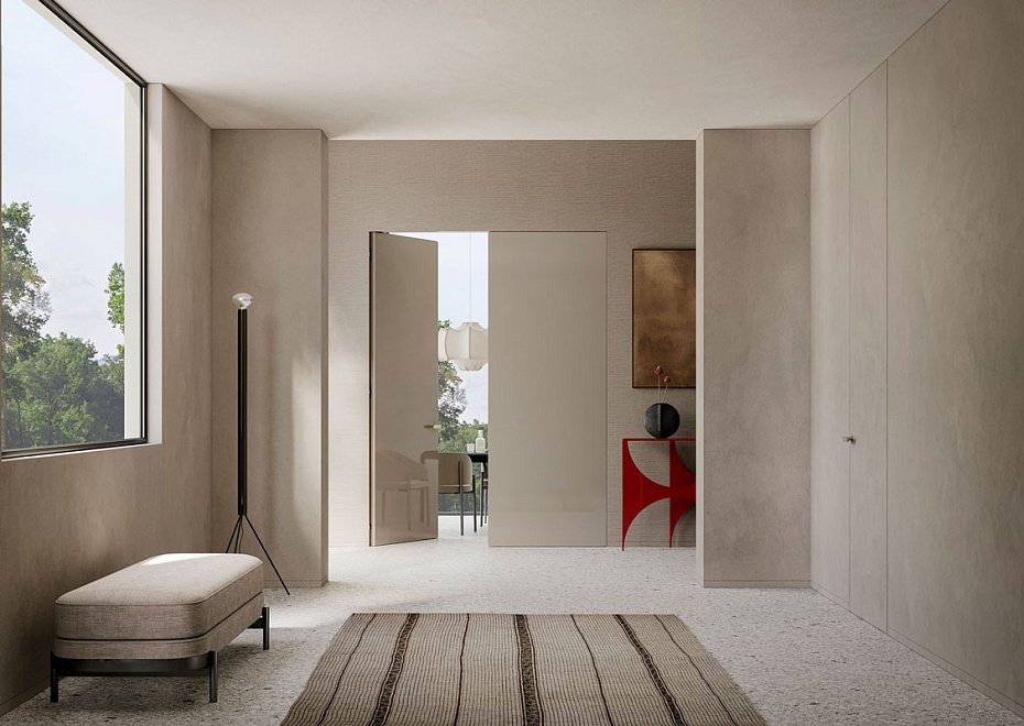 Lualdi’s distinctive vision is rooted in five core values: quality, technological innovation, aesthetic exploration, production flexibility, and environmental responsibility. These principles shape the design of their doors, paneling, and furniture systems—crafted as authentic signature pieces.